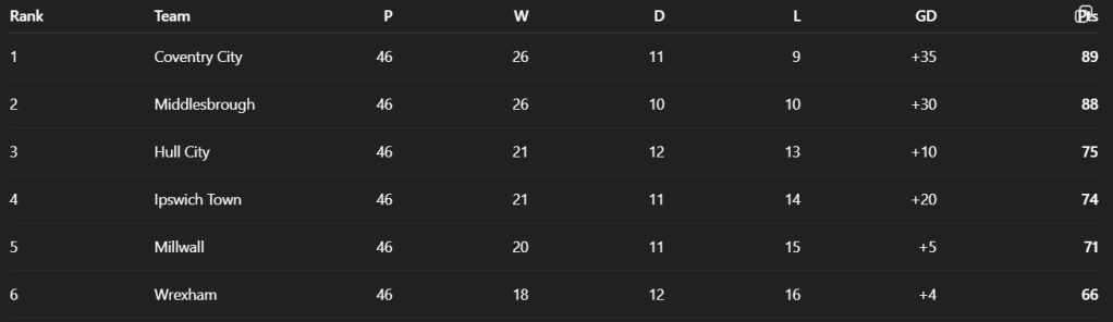 However, according to ChatGPT, City would emerge as 3-2 victors on aggregate after a 2-1 home success in the second leg, whilst it has predicted Ipswich Town to be the club’s third Championship play-off opponents after Bristol City and Sheffield Wednesday.
